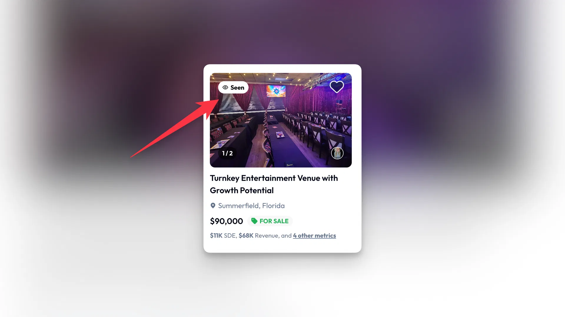 This is especially helpful when you’re filtering your search. For example, if you filter for businesses that are pre-qualified for an SBA loan, we’ll make sure that information is visible right on the card. This helps you spot the key details without having to click into every single listing.