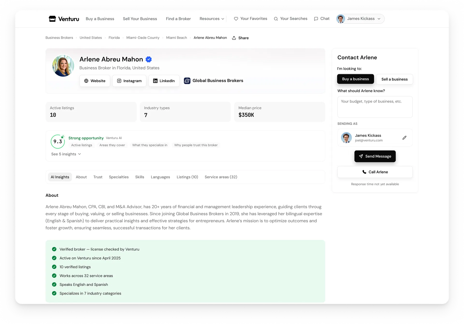 The result: buyers see a complete, credible, professional profile when they find you. They see what you specialize in, how responsive you are, and how many businesses you represent. They can evaluate your track record before reaching out — and the brokers who show up consistently get more inquiries.