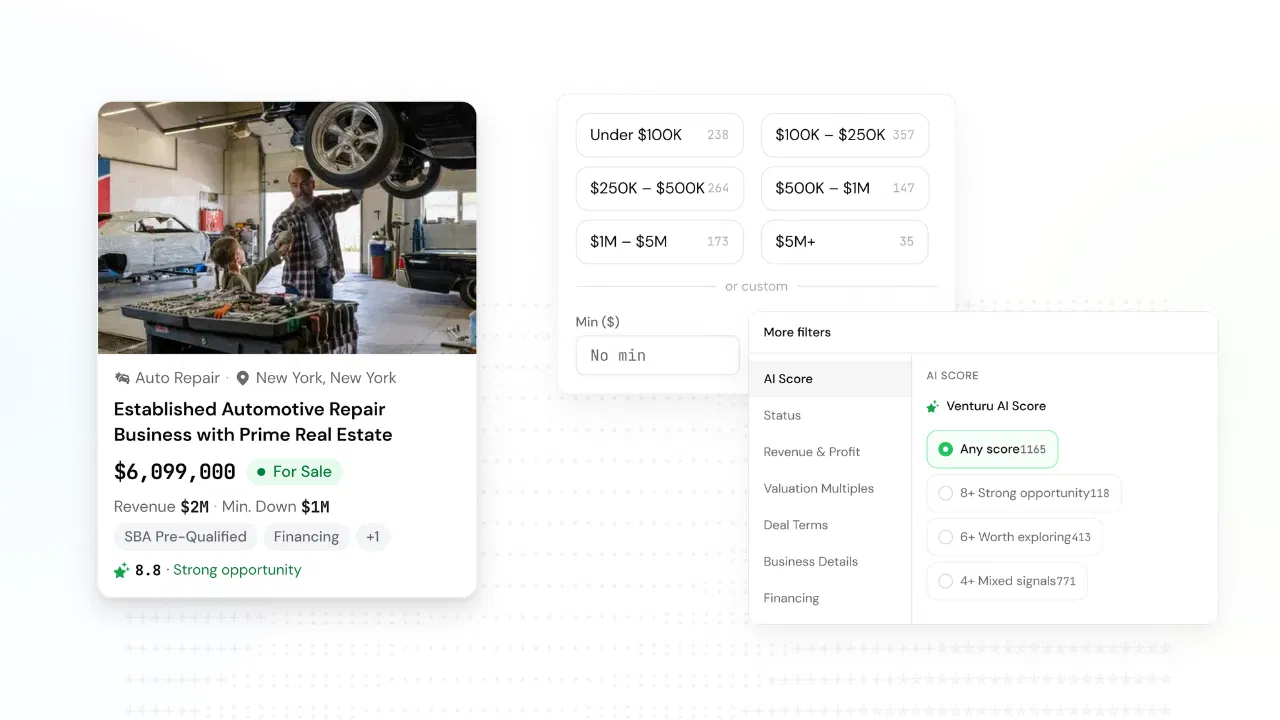 Why this matters for brokers: Better search means more qualified buyers on your listings. A buyer who filters for "SBA pre-qualified, $200K–$500K, restaurant, asset sale" and lands on your listing has already self-selected. That's a better lead than someone casually scrolling — and it costs you nothing.
